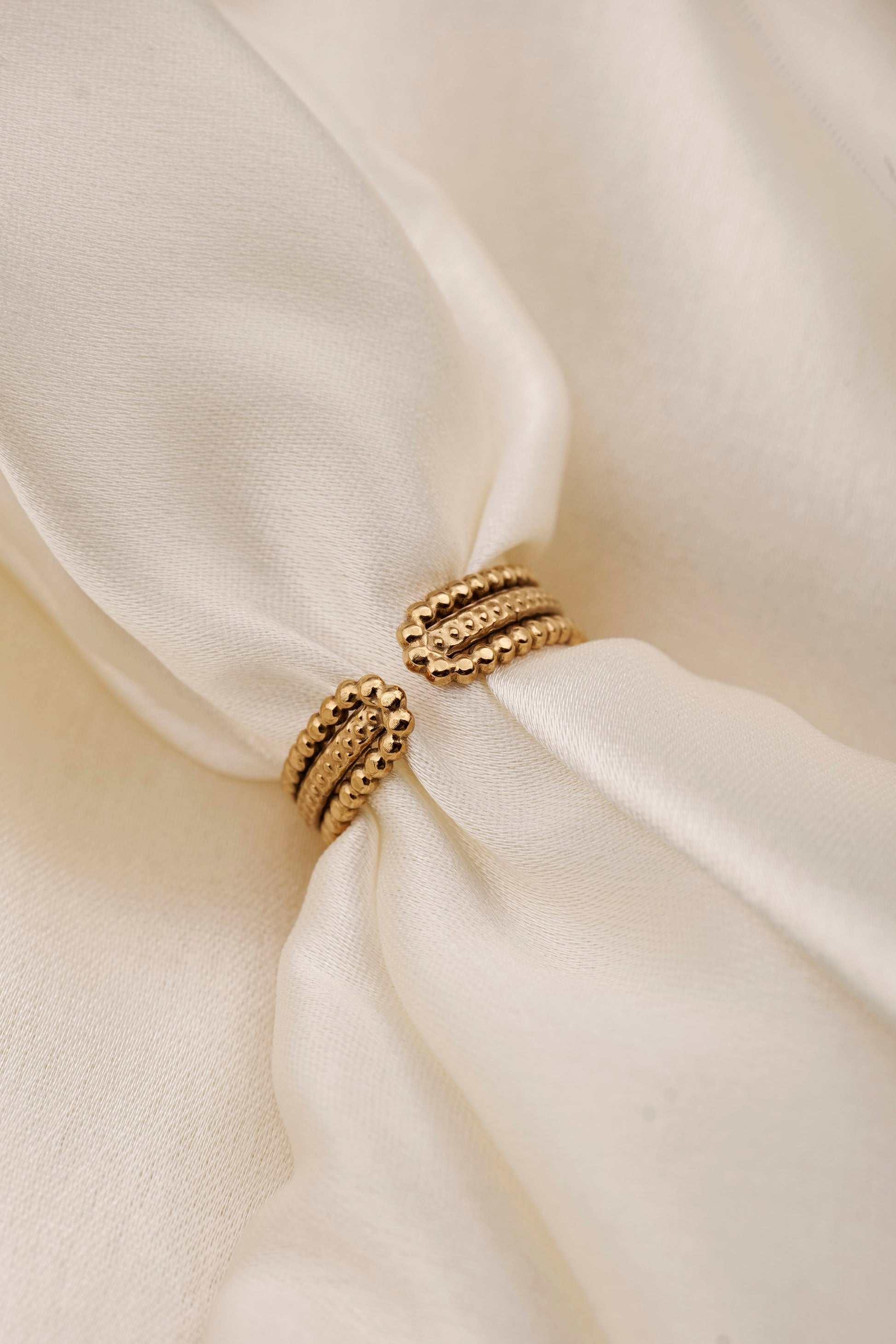 Command attention with this statement anti-tarnish ring, adorned with a regal emerald-cut green AD stone at its center. The layered band design features twisted gold beading and intricate textures, while a sparkling border of American Diamonds frames the gemstone for maximum impact. Perfect for stacking or wearing solo, this ring channels vintage opulence with a bold, modern edge.