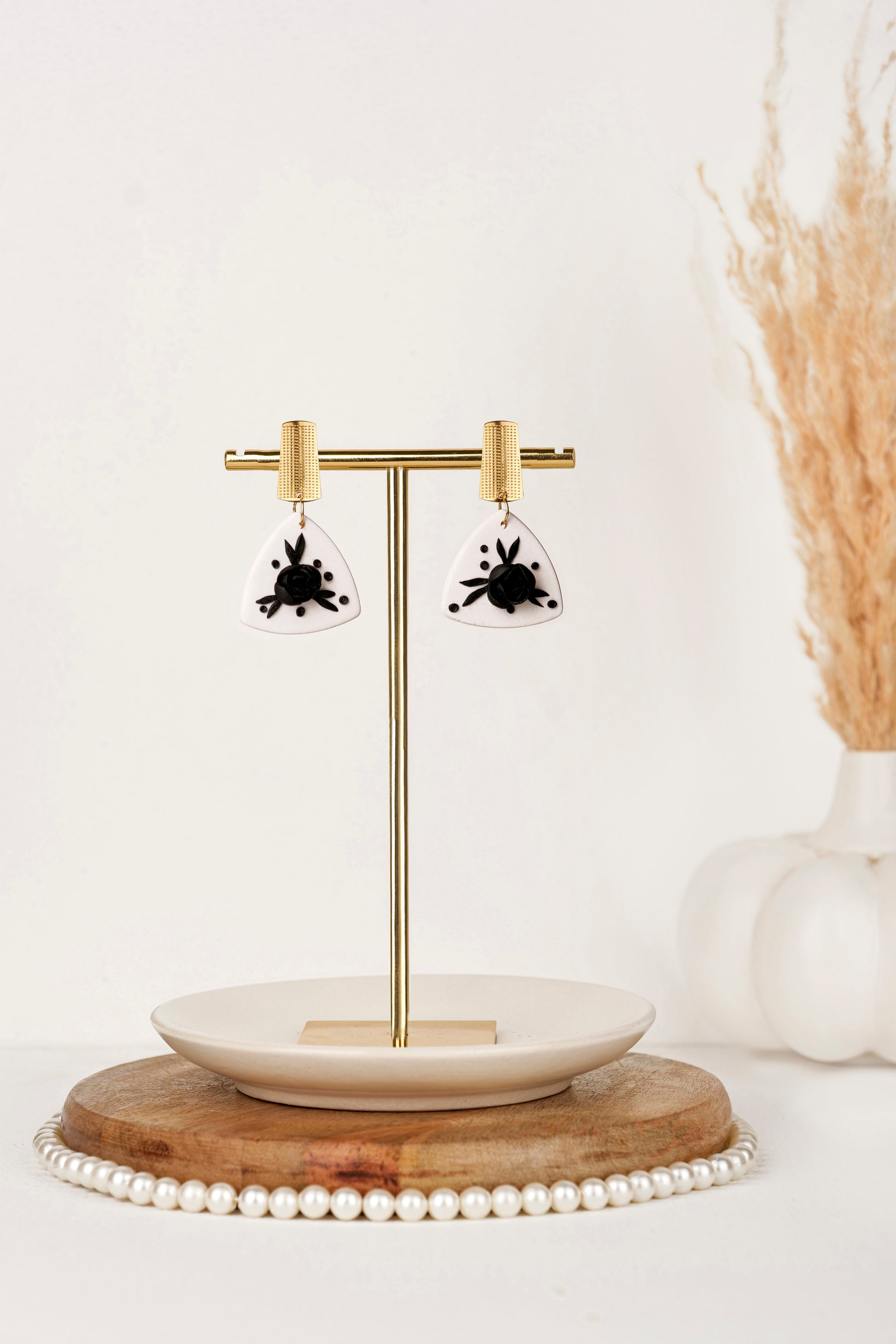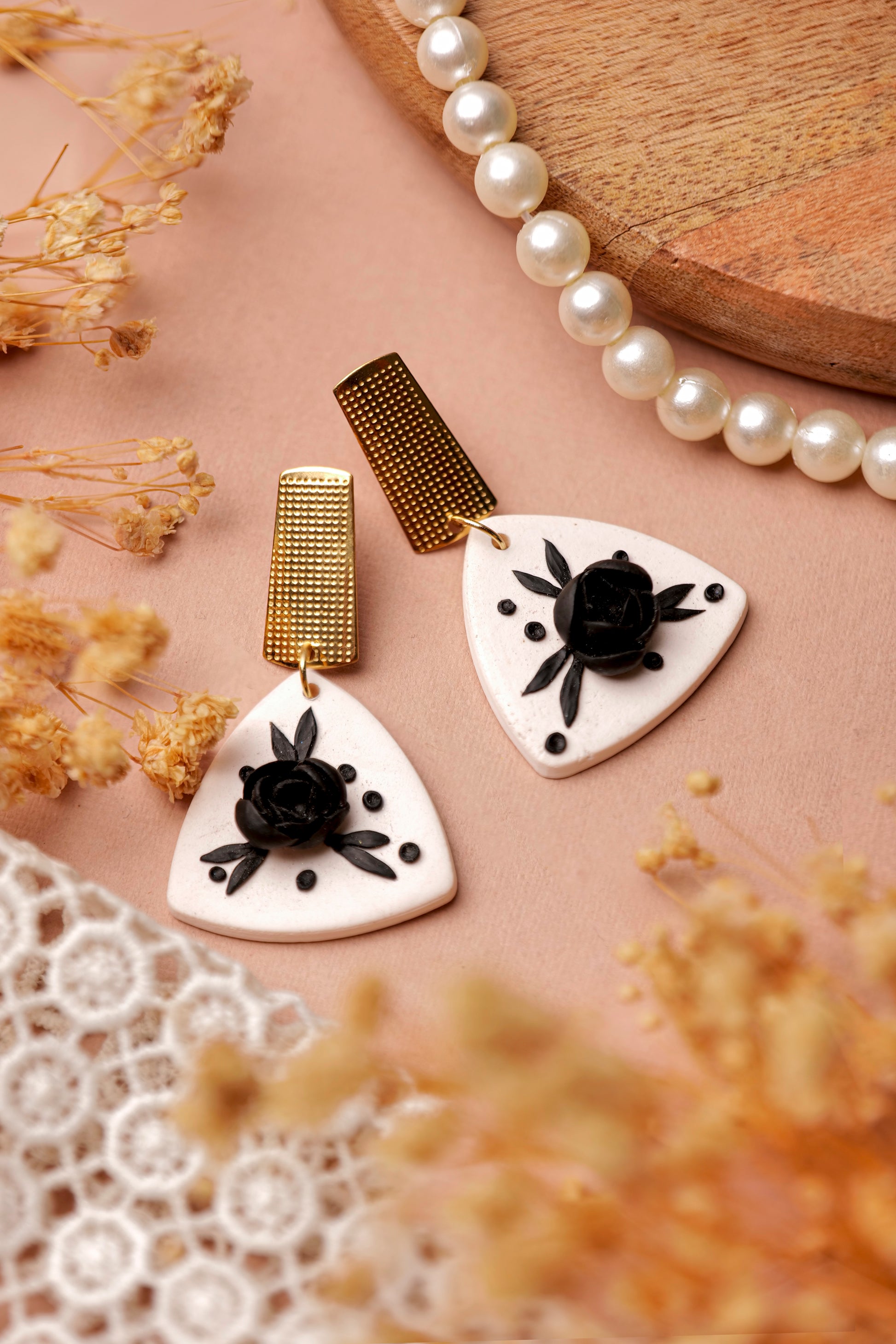 Meet GOTH GARDEN โ a bold celebration of contrast and elegance. The layered rose and delicate leaves are sculpted entirely from clay, creating a 3D effect that brings this piece to life. They're finished with textured golden studs that add a luxurious sparkle without being overpowering.