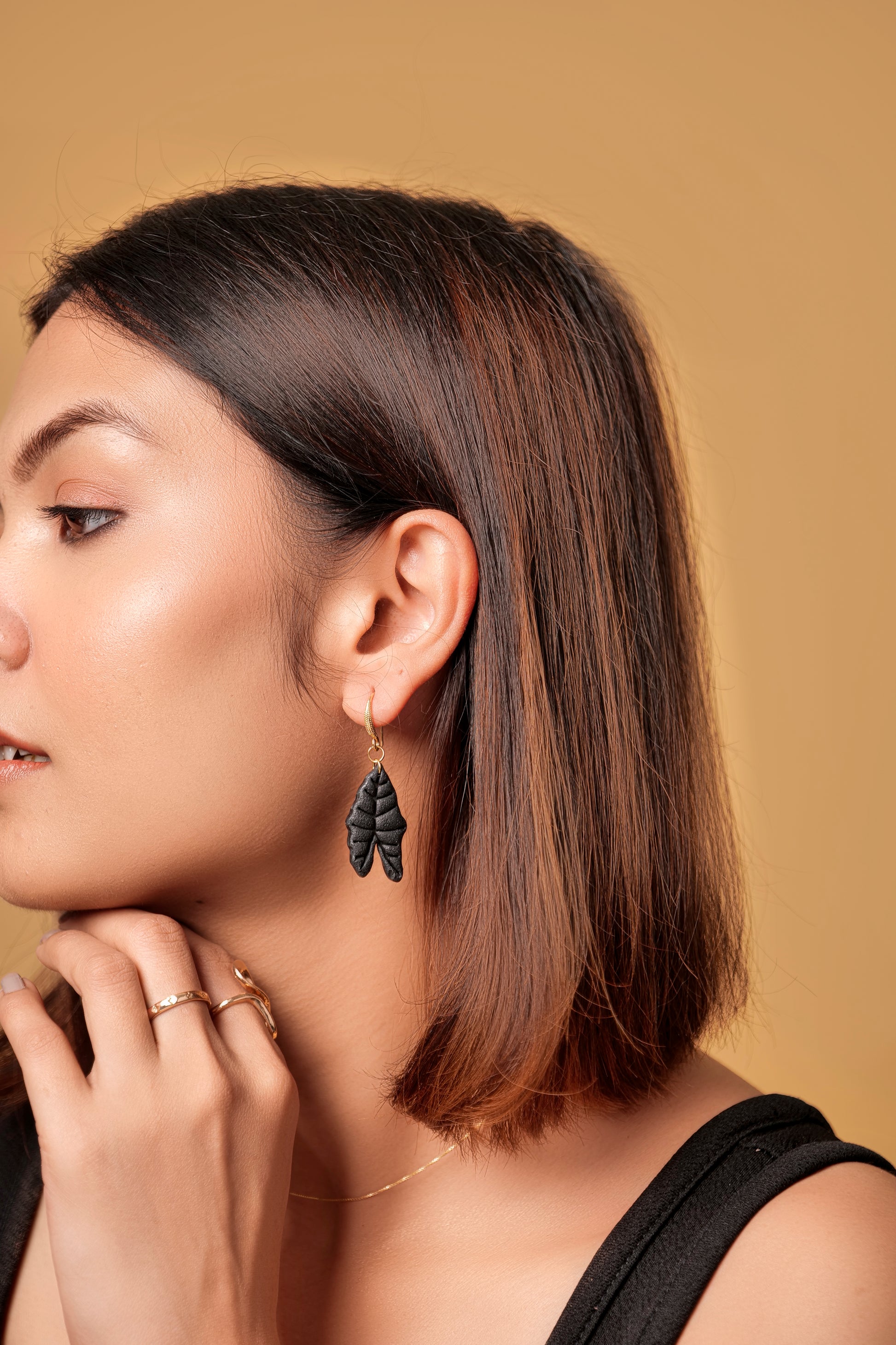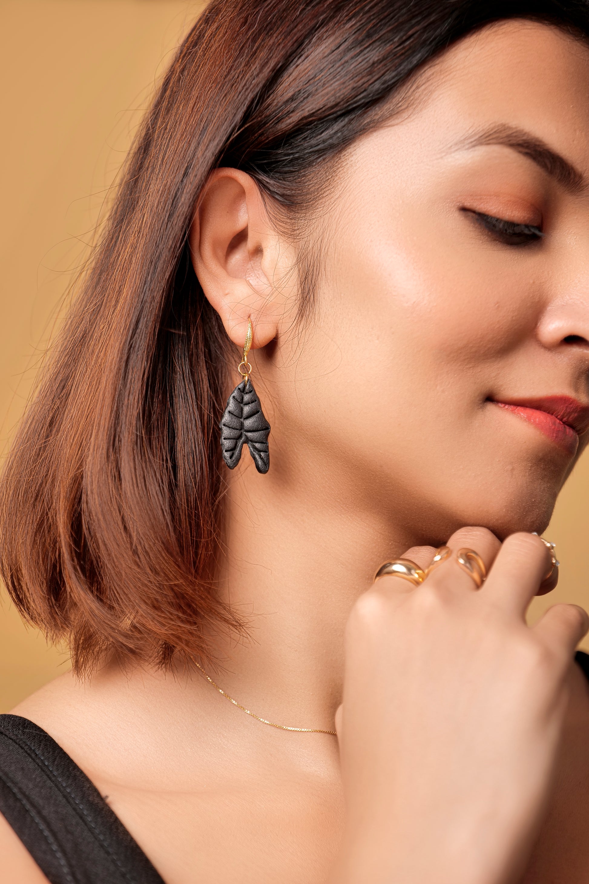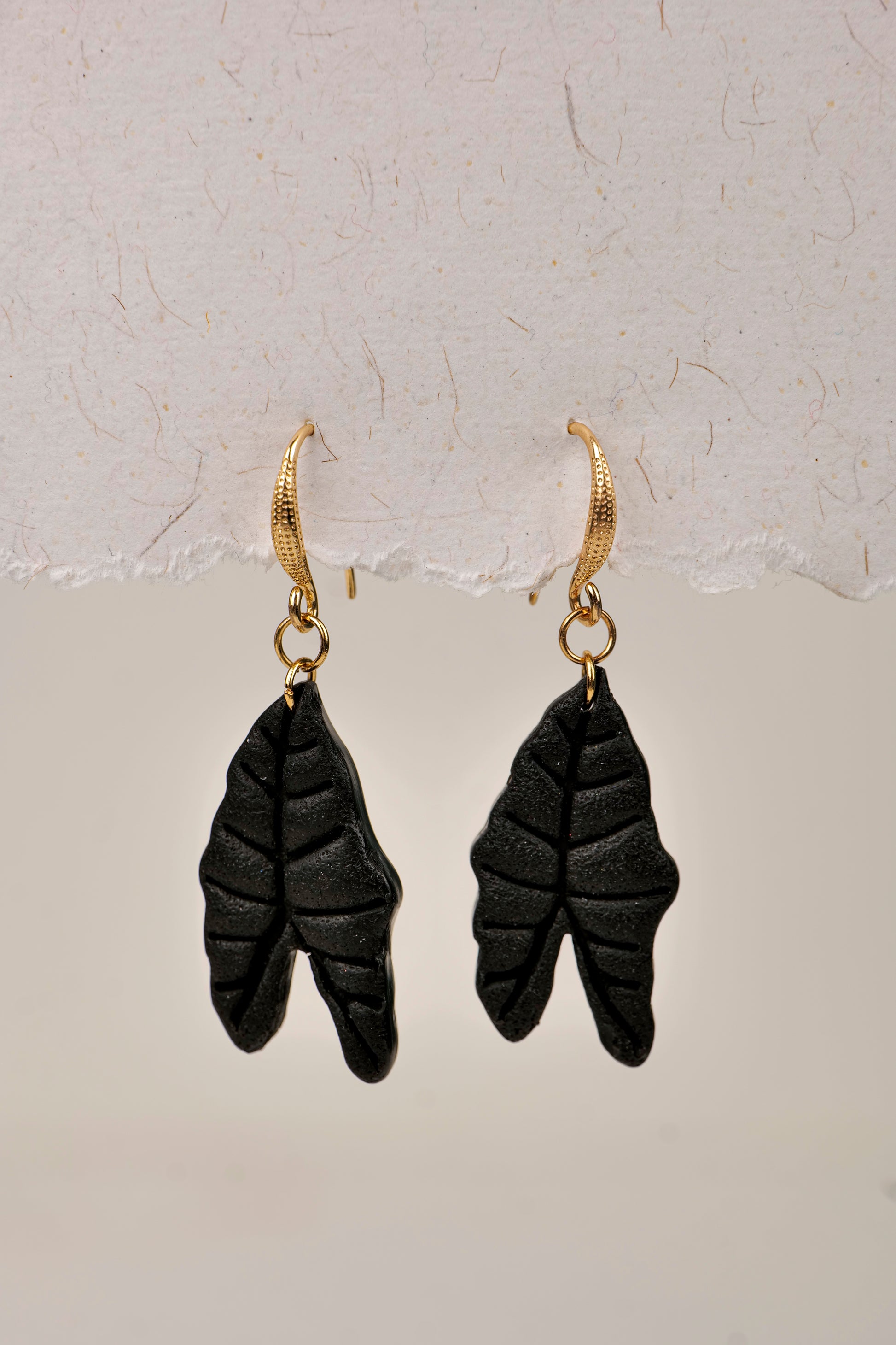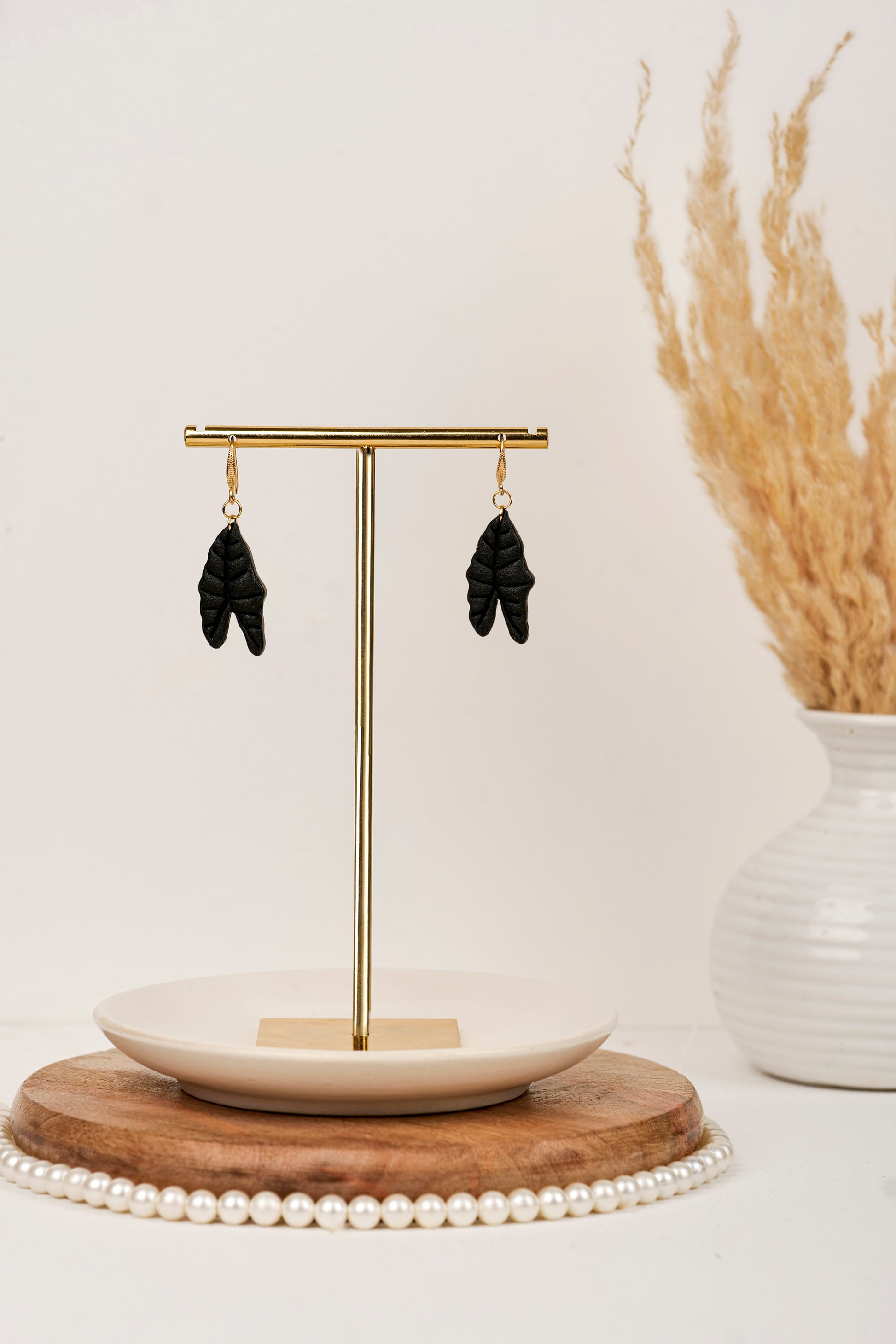 A bold, handcrafted black leaf design paired with elegant gold hooks. Lightweight and nature-inspired, these earrings are perfect for everyday wear.