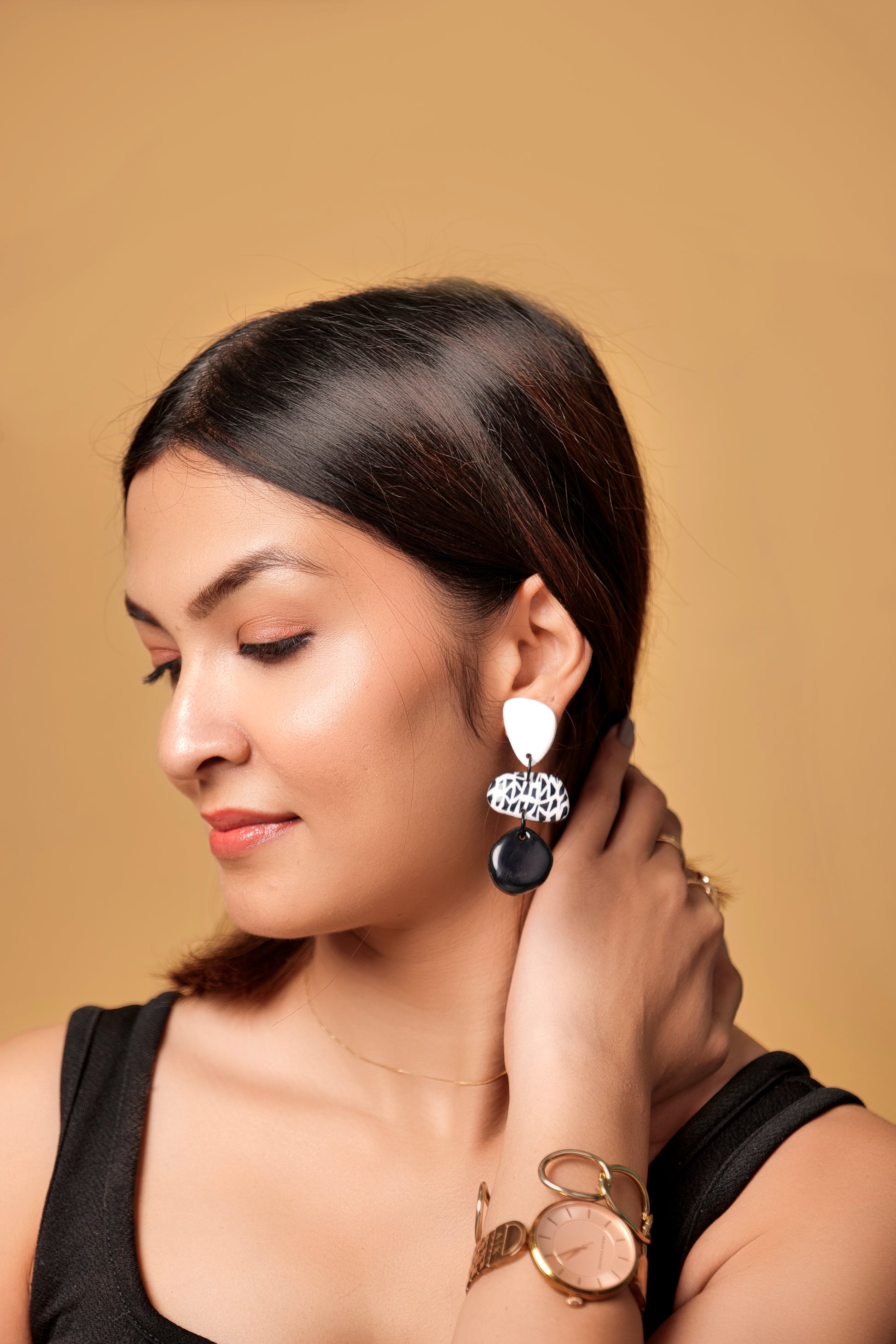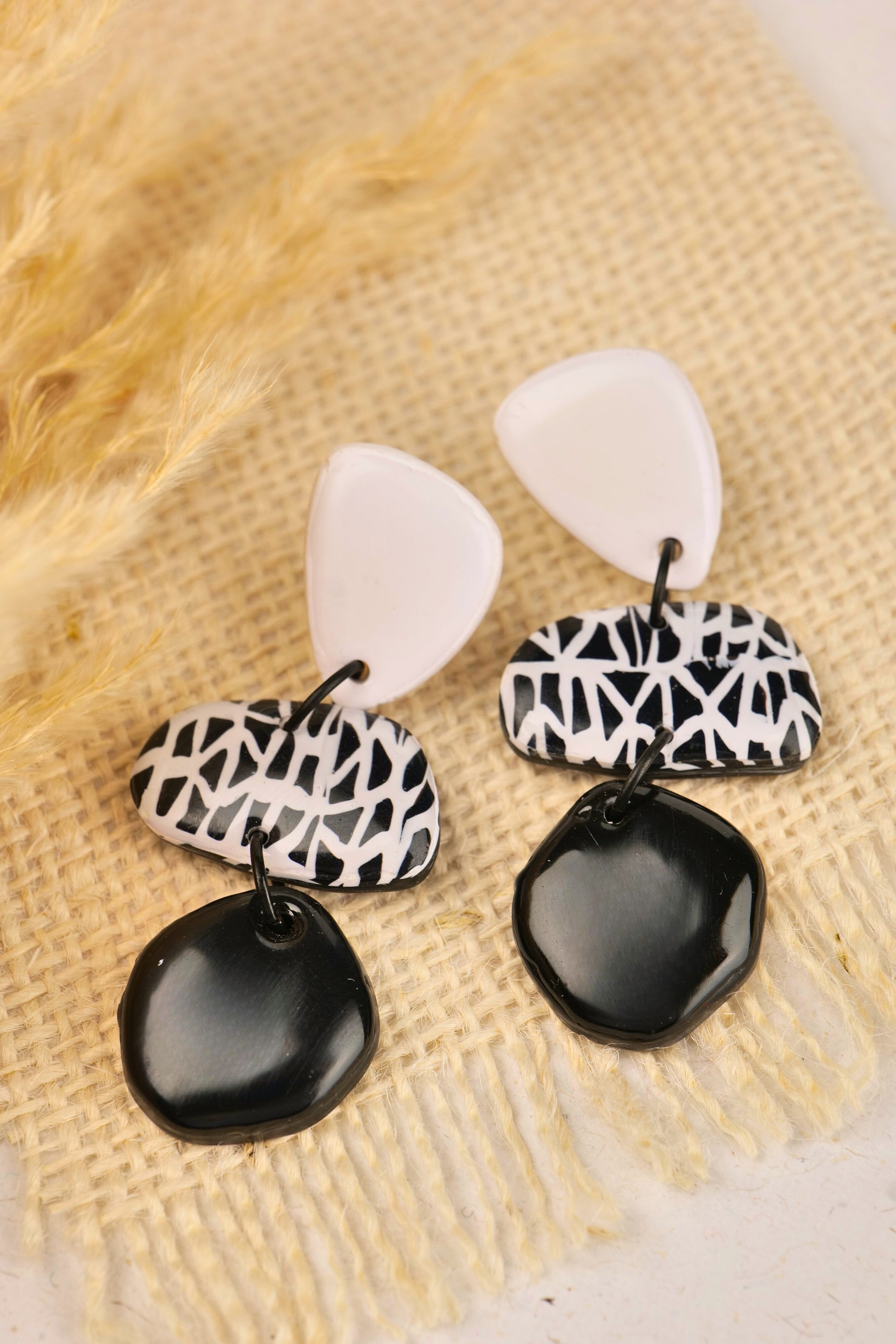 Sleek, stylish, and a little abstract — Modern Maze is for the ones who love a touch of edge. With its monochrome palette and artistic linework, this pair adds a graphic punch to minimal looks. The layered drop design creates movement while keeping things clean and wearable.