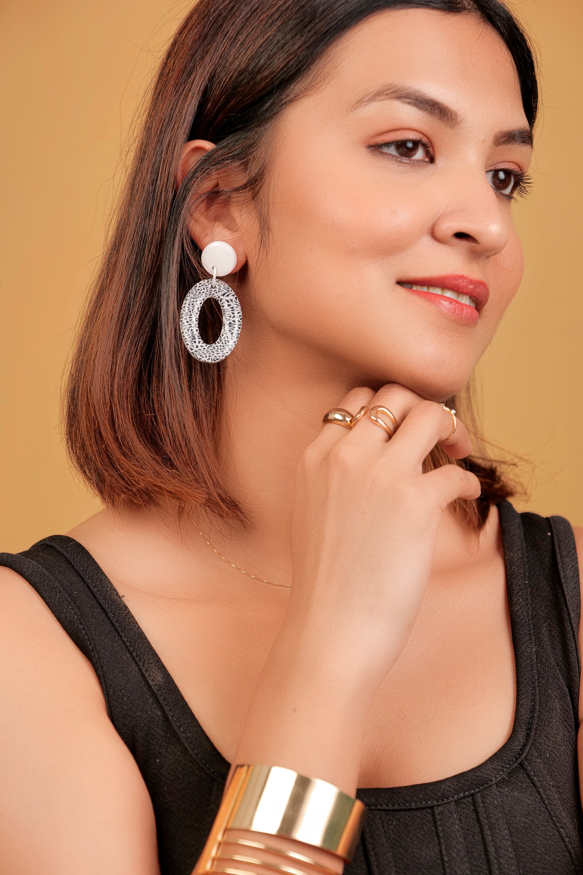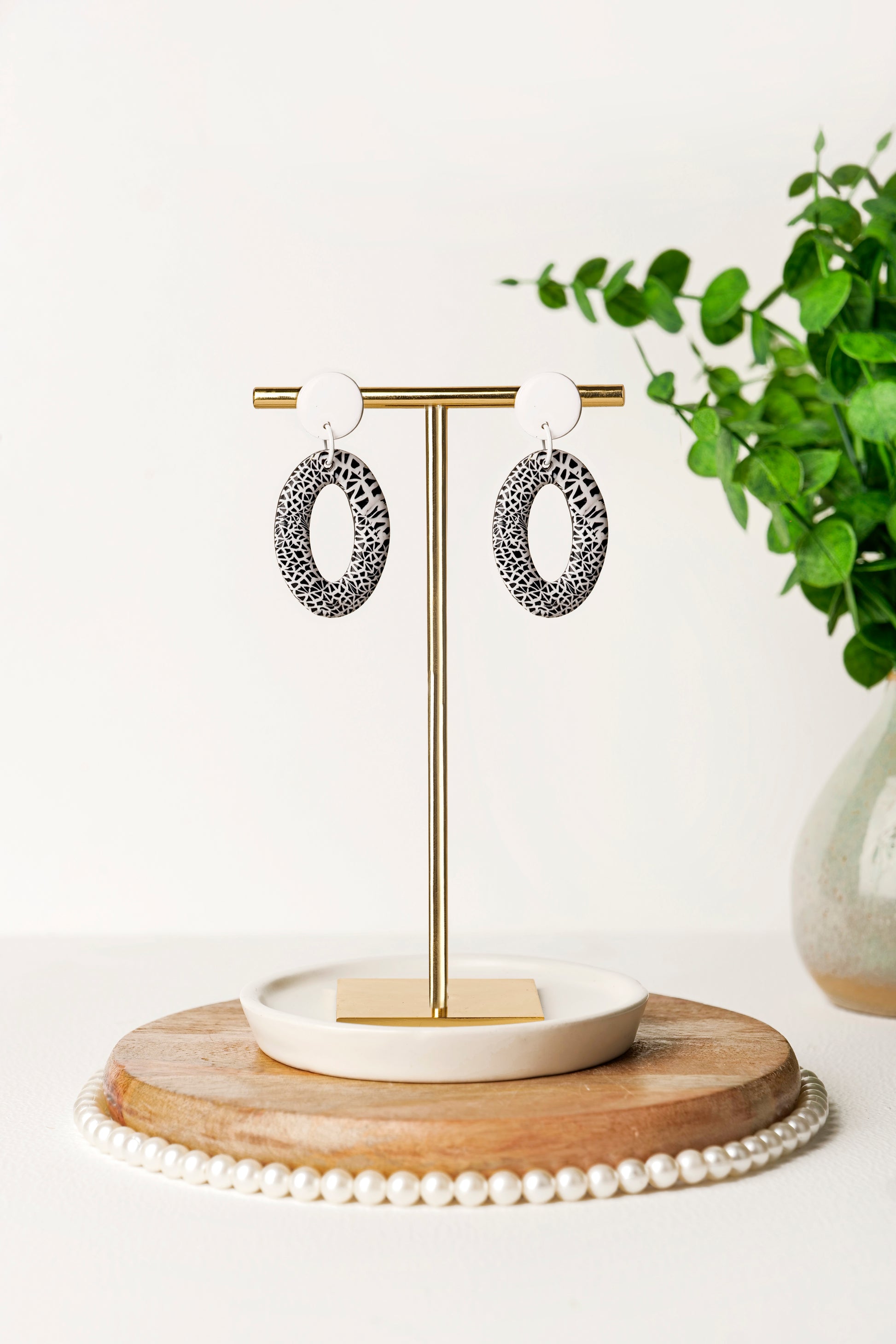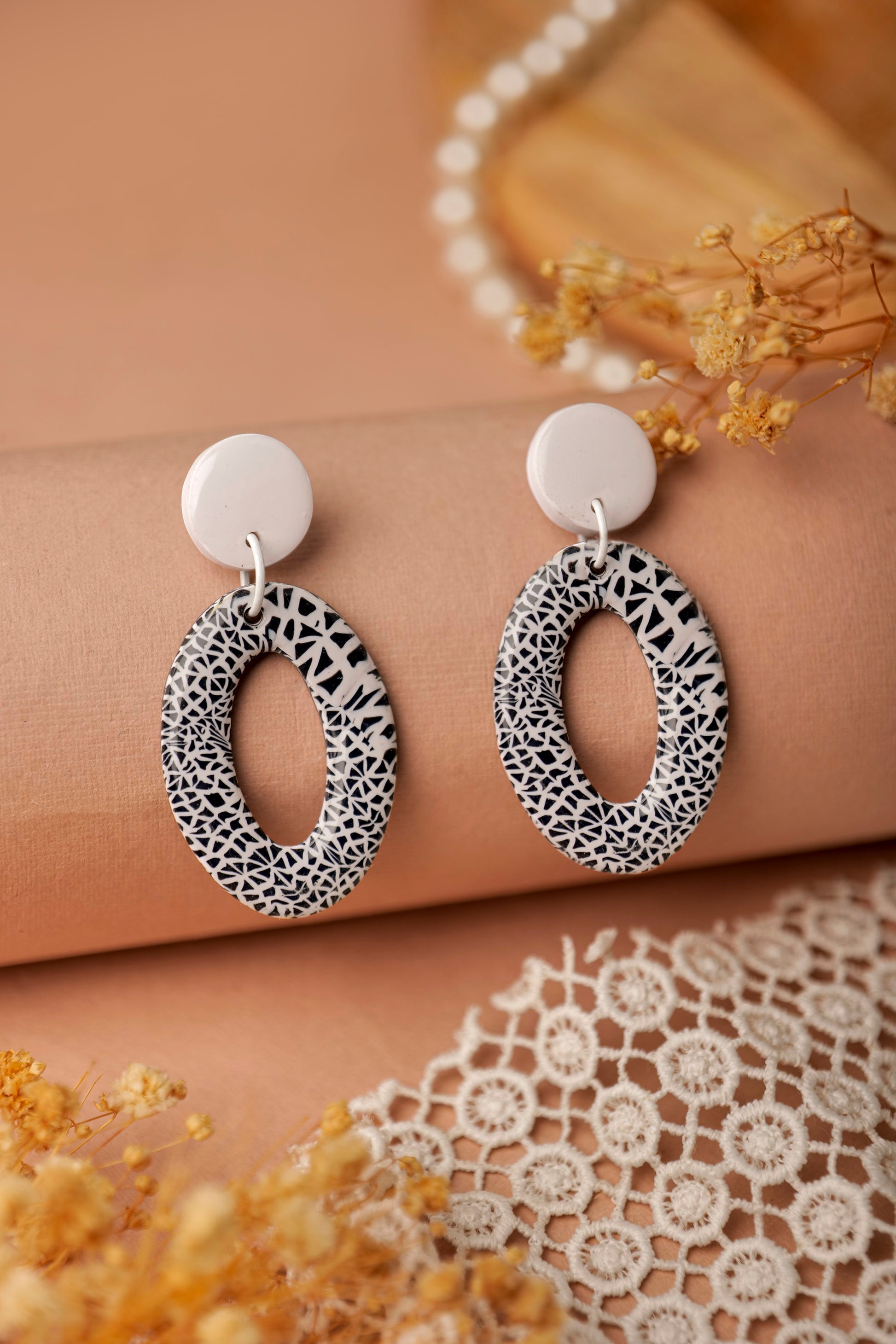 These handcrafted polymer clay earrings are coated with resin for a polished shine and feature a crisp oval silhouette that flatters every face shape.